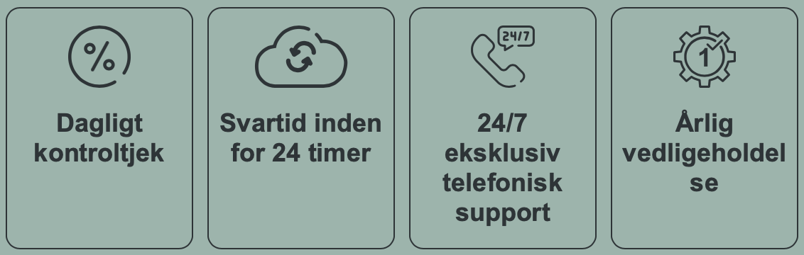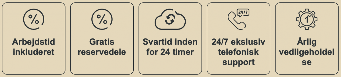 Vælger du f.eks en Premium pakke, får du alle udgifter betalt uanset omfanget af servicen, F.eks. er alle reservedele inkluderet i abonnementet, samt kørsel og transport af teknikeren til din bopæl. Med et Premium abonnement opnår du reelt 10 års garanti på din varmepumpe.
